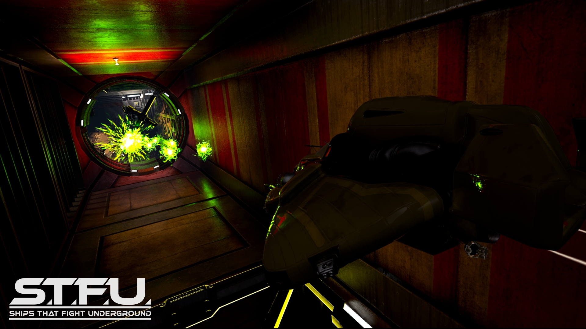 STFU is a complete re-imagining of the first-person ship shooter genre made popular in the 1990's. The original generation of games that made this genre used static ships with no progression. Instead, you entered a level and used power-ups and weapons you found to wipe out your opponents and complete obstacles.